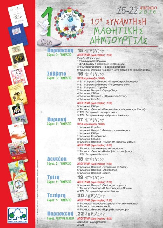 ΔΗΜΟΣ ΑΓΙΑΣ ΠΑΡΑΣΚΕΥΗΣ: 10η ΣΥΝΑΝΤΗΣΗ ΜΑΘΗΤΙΚΗΣ ΔΗΜΙΟΥΡΓΙΑΣ 15-22 ΑΠΡΙΛΙΟΥ 2016