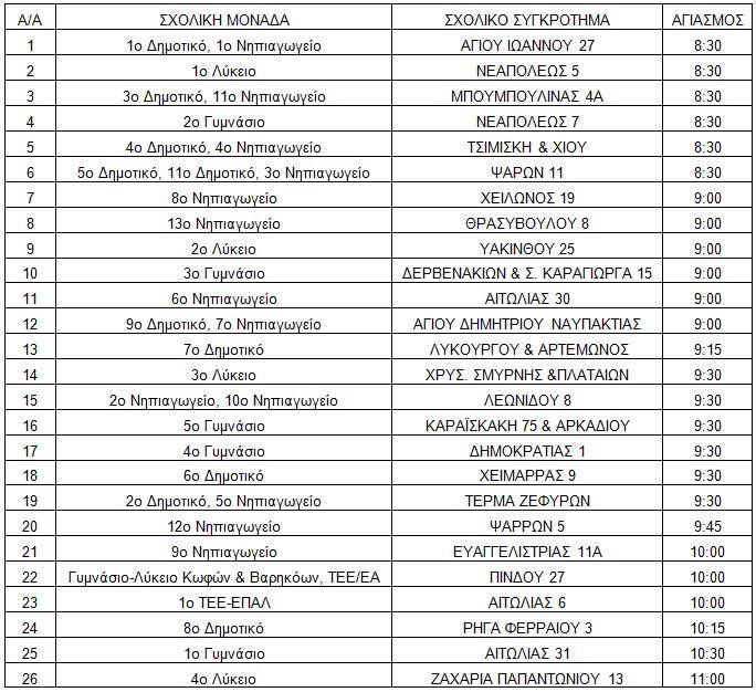 Τη Δευτέρα 11 Σεπτεμβρίου θα γίνουν στα σχολεία της χώρας οι καθιερωμένοι αγιασμοί για την έναρξη της νέας σχολικής χρονιάς 2017-2018. Οι ώρες των αγιασμών στα Δημόσια Σχολεία του Δήμου Αγίας Παρασκευής είναι οι ακόλουθες: