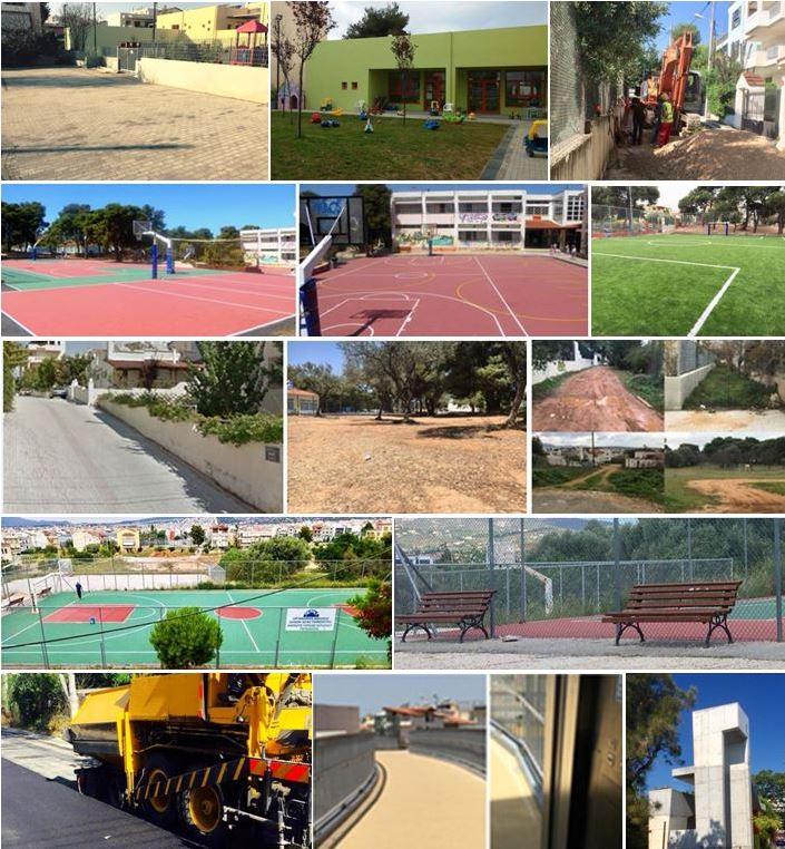 •9ο Δημοτικό Σχολείο: Έγινε ανακατασκευή του αύλειου χώρου, του γηπέδου 5χ5 (με χρηματοδότηση της ΓΓΑ) και της αίθουσας εκδηλώσεων, βάφτηκε εξωτερικά πλήρως και έγινε περίφραξη παλαιού κτίσματος.
