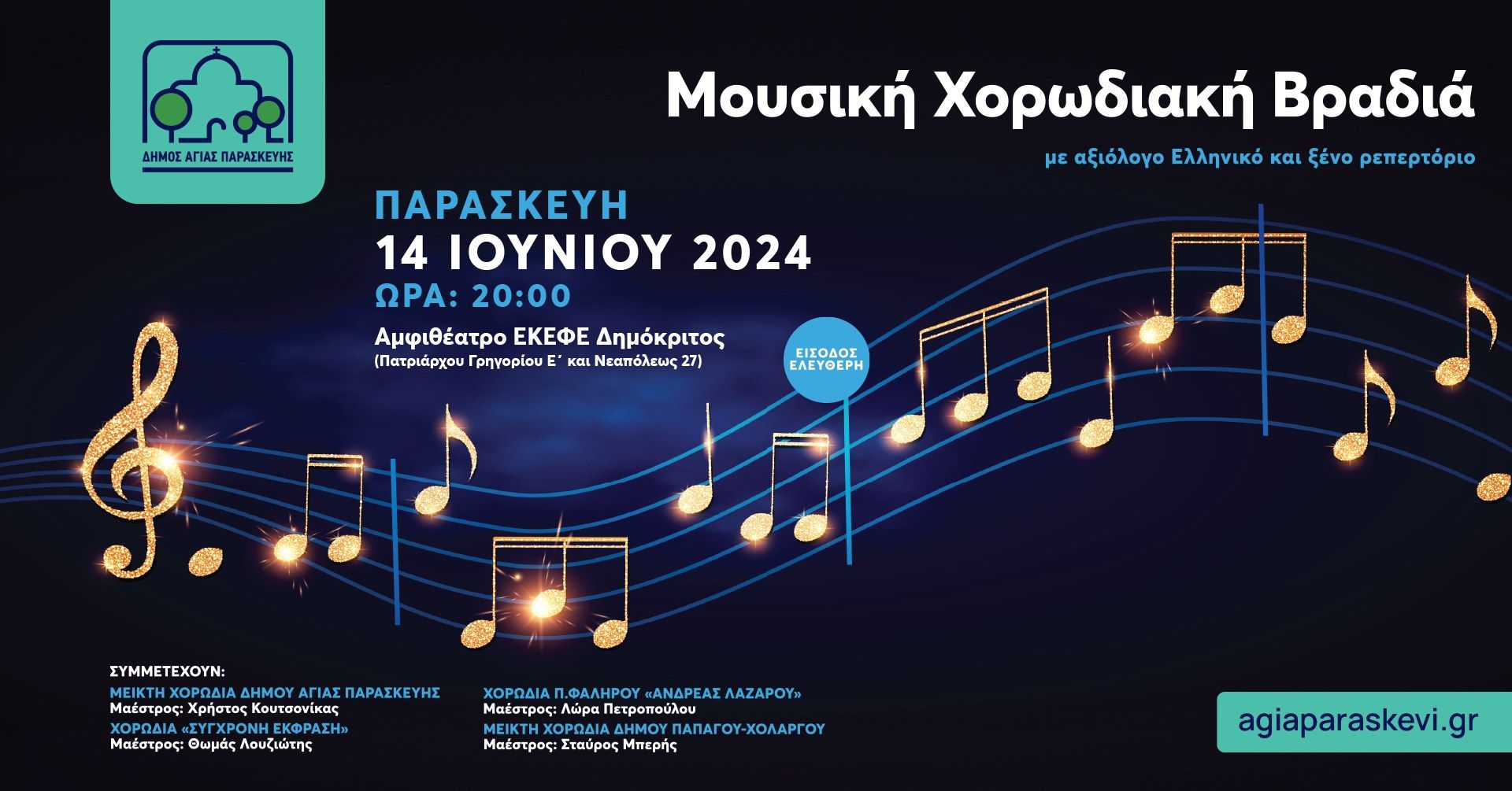 Οι 4 χορωδίες θα σμίξουν μουσικά με μοναδικά κομμάτια από το ελληνικό και το ξένο ρεπερτόριο, σε μία εκδήλωση η οποία θα διοργανωθεί στο αμφιθέατρο του «ΕΚΕΦΕ Δημόκριτος»(Πατριάρχου Γρηγορίου Ε’ και Νεαπόλεως 27) και ώρα 20.00.