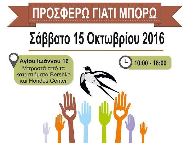 Σας γνωρίζουμε ότι ο Σύλλογός Γονέων, Κηδεμόνων & Φίλων Ατόμων με Αναπηρία Αγίας Παρασκευής «Χελιδόνι» διοργανώνει ΒΑΖΑΑR το Σάββατο 15 Οκτωβρίου 2016 και ώρα: 10:00 – 18:00 στην οδό Αγίου Ιωάννου 16 στον αίθριο χώρο μπροστά από τα καταστήματα BERHSKA-HONDOS CENTER .